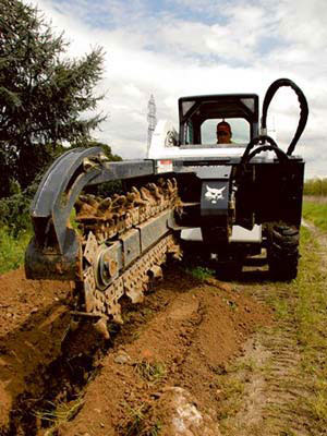 excavador en la realización de zanjas drenes y